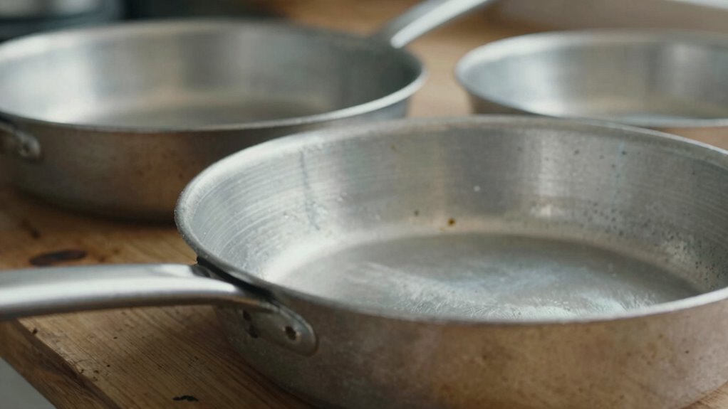 Have you ever considered seasoning your aluminum cookware? One major benefit is that it can create a natural non-stick coating, reducing the need for synthetic non-stick coatings that may wear off over time. Proper seasoning techniques can enhance your pan’s performance and longevity. Additionally, home decor inspiration can help you find the perfect tools and accessories to complement your cookware setup. Seasoning aluminum can also improve the surface durability, making the cookware more resistant to scratches and wear over time. Furthermore, understanding the science of seasoning can help you achieve more consistent results and optimize your cookware’s performance. To achieve a well-seasoned surface, consistent application of heat and oil is crucial, which ties into the importance of cooking technique mastery. However, there are drawbacks. Seasoning aluminum can be uneven without careful application, leading to inconsistent non-stick results. It also requires maintenance to preserve the coating, which might be inconvenient. Additionally, seasoned aluminum pans can be more sensitive to acidic foods, potentially damaging the coating. Seasoning techniques and proper care are essential to maximize benefits and minimize drawbacks. Overall, seasoning offers a cost-effective way to improve your cookware, but it demands effort and attention to detail. Weigh these pros and cons to decide if seasoning aluminum pans aligns with your cooking style.