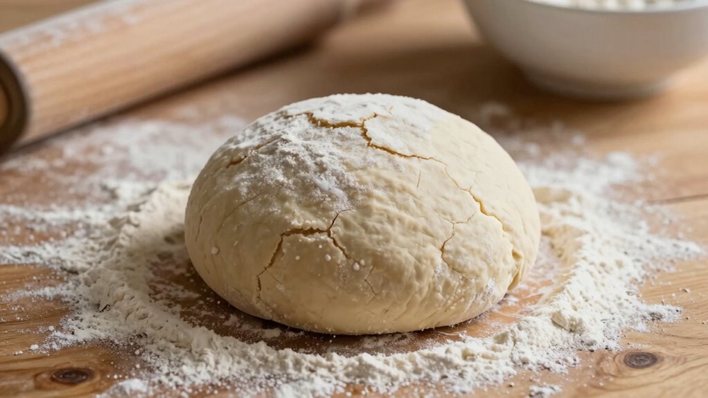 As gluten fibers relax and realign during the resting period, the dough becomes more elastic and easier to shape. Resting allows the gluten network to develop fully, which directly enhances dough elasticity. When gluten strands settle into a more organized structure, they stretch more easily without tearing, giving your dough better flexibility. This improved elasticity makes handling, rolling, and stretching smoother, leading to a more uniform final product. Resting also prevents the dough from shrinking or springing back during shaping, saving you time and effort. By allowing gluten development to progress, resting guarantees your dough gains the perfect balance of strength and flexibility, making it more responsive and manageable for your baking needs.