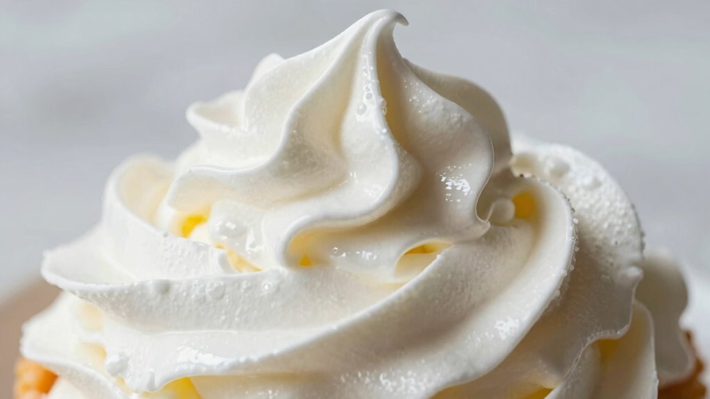 Stabilizing whipped cream can sometimes be tricky, especially when it deflates or becomes grainy despite following proper techniques. Common problems include a loss of volume, undesirable texture, or compromised presentation aesthetics. To troubleshoot, consider the cause: overbeating, incorrect temperature, or insufficient stabilizer. For a sweet flavor enhancement, use powdered sugar or vanilla, but avoid excess liquid. If your cream deflates, gently fold in a small amount of stabilized gelatin or cornstarch. For graininess, beat at medium speed and ensure ingredients are chilled. Proper temperature control is essential for achieving perfect whipped cream texture. Additionally, temperature management can help prevent issues like graininess and deflation, ensuring a stable and smooth final product. Understanding the science of stabilization can help you troubleshoot and perfect your whipped cream every time. Maintaining a consistent whipping speed helps create a stable foam structure. Using the right stabilizer techniques can significantly improve the longevity and quality of your whipped cream. Here’s a quick guide: