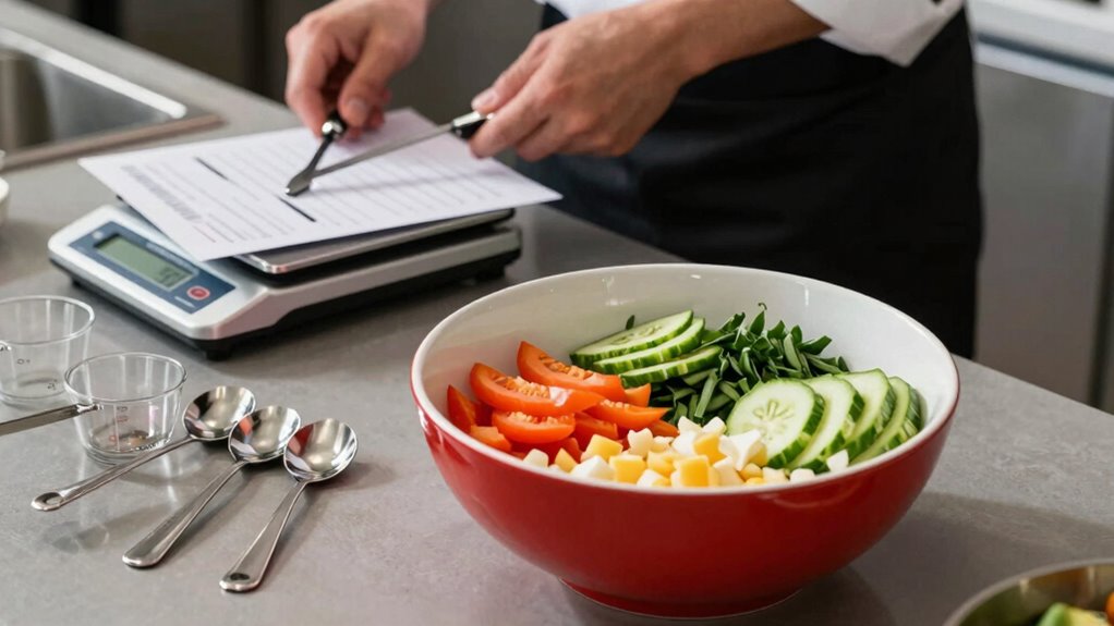 Think of ingredient measurement and portion control as your recipe’s best friends when scaling. You can prevent waste by carefully adjusting the ingredients proportionally, avoiding excess. Measure precisely and consider using tools like a scale or measuring cups. Portion out ingredients thoughtfully, so you only use what you need. This way, you minimize waste, save money, and keep your scaled recipes perfect every time.