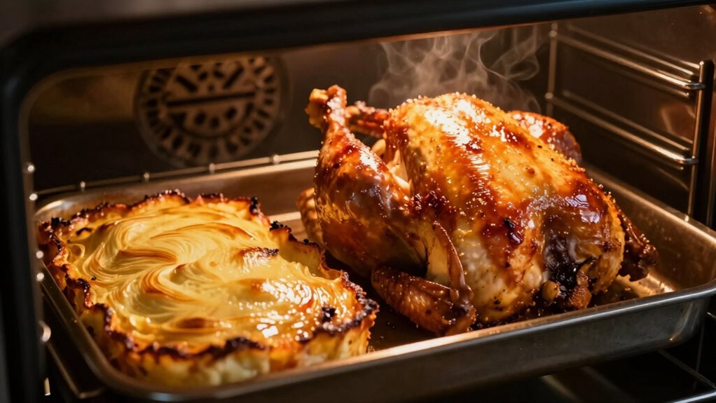 With broiling, you typically set your oven to a high temperature—often between 500°F and 550°F—to mimic the intense heat of a grill. Because of this high oven temperature, broiling cooks food quickly, often in just a few minutes. The short cooking duration is essential; leaving food under the broiler for too long risks burning or overcooking. You need to stay attentive, flipping or turning your food as necessary to ensure even browning or melting. This method is ideal for finishing dishes, crisping up foods, or quickly searing the surface of meats. Understanding heat transfer is crucial to mastering this technique effectively.