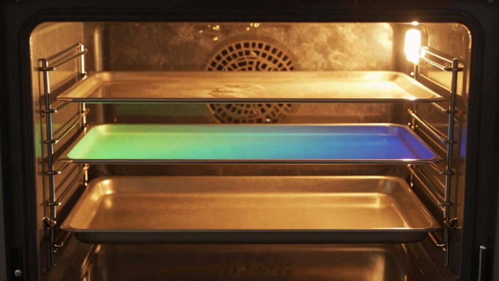 Certain rack positions are indeed better for specific baked goods to guarantee baking consistency. For example, placing bread on the middle rack promotes even heat distribution, while cookies benefit from being lower to avoid over-browning. Adjust your rack positioning based on the item’s size and baking requirements. Regularly reassessing heat zones helps maintain ideal baking conditions, ensuring your baked goods turn out perfect every time.