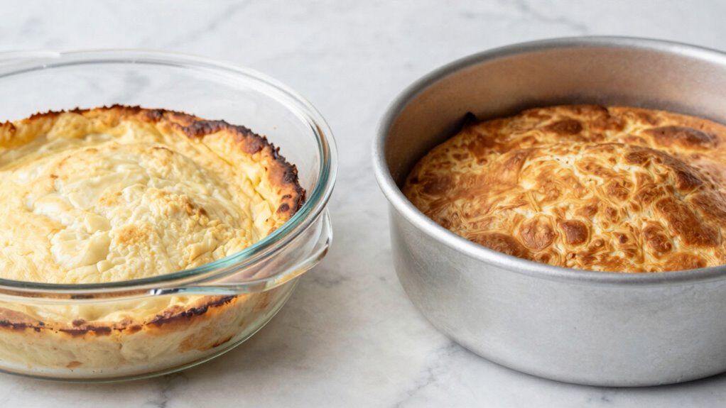 - Glass heats more slowly but retains heat longer, often needing additional baking time.