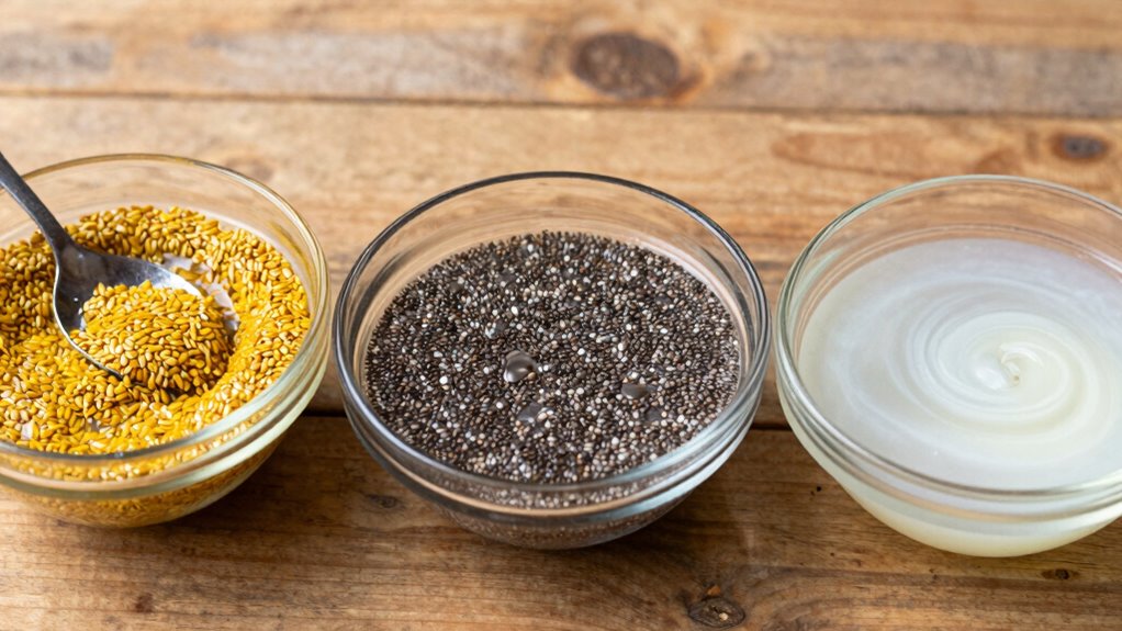 Think of flax, chia, and aquafaba as three different artists painting your baked goods’ flavor profiles. Flax has a mild, nutty taste, chia offers a subtle earthiness, and aquafaba is nearly flavorless, blending seamlessly. Taste differences are minimal, but these slight nuances can influence your final product’s aroma. You’ll find aquafaba the most neutral, while flax and chia add gentle, distinctive hints to your recipes.