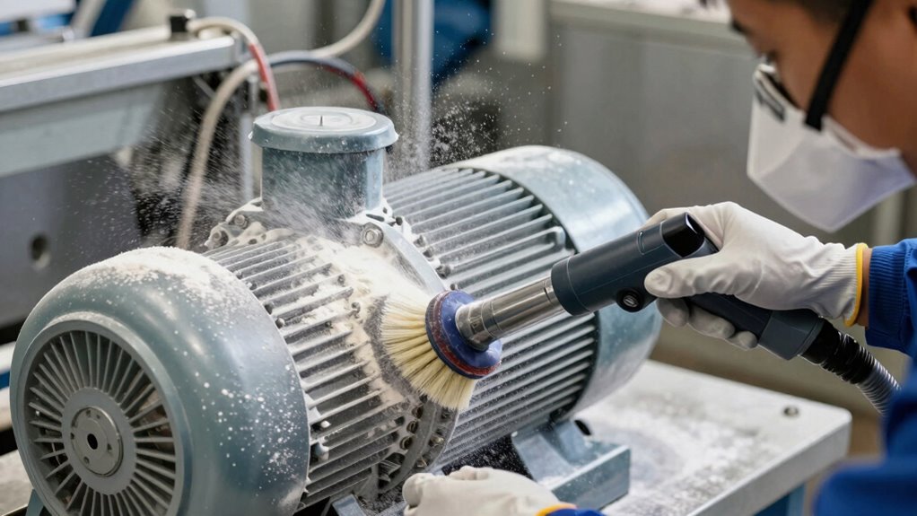 Regular maintenance is essential for keeping your equipment safe and functioning efficiently. Regularly inspecting your machinery helps catch issues like dust accumulation early, preventing potential hazards. By scheduling consistent checks, you ensure dust build-up doesn’t interfere with motor operation or cause overheating. Here are three key steps to maintain your equipment: