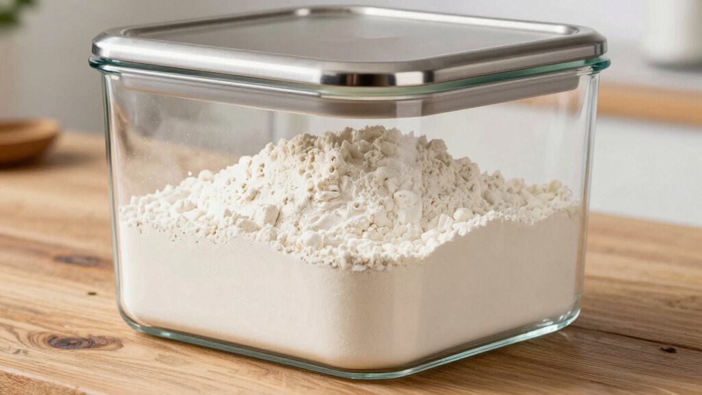 With these features, your flour stays fresh, odors stay contained, and your pantry remains organized. Proper storage solutions are essential for extending the shelf life of your ingredients and maintaining their quality.