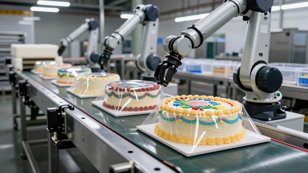 Did you know that over 60% of cake damages occur due to environmental factors? Airflow dynamics substantially impact stability, as strong drafts can cause shifting or cracking. Vibration mitigation becomes critical on rough transport routes, reducing the risk of deformation. You need to contemplate temperature fluctuations, humidity, and airflow to keep your cakes intact during shipping, ensuring they arrive fresh and undamaged.
