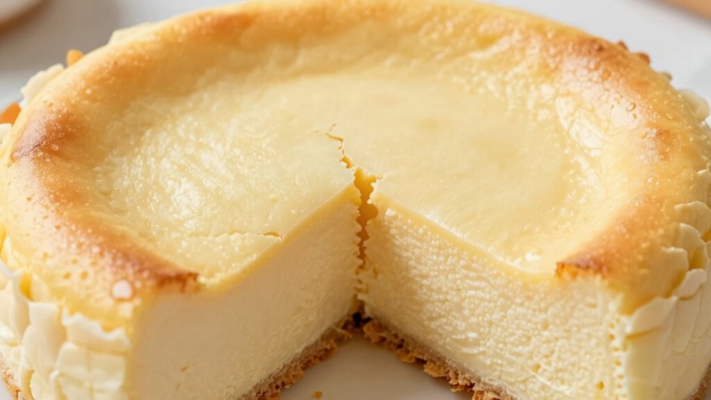 It’s no coincidence that oven temperature impacts crack formation in your cheesecake. If the oven heat is too high, your cheesecake might rise rapidly and then crack as it cools. Conversely, a low, steady temperature allows gentle baking, minimizing cracks. Make certain you maintain a consistent oven temperature, ideally around 325°F (163°C), and avoid sudden temperature changes. Proper oven heat control keeps your cheesecake smooth and crack-free.