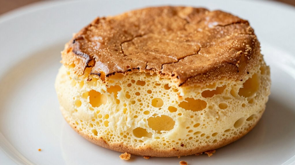 Certain ingredients can cause soufflé failure if they disrupt egg stability or ingredient ratios. For example, too much fat or sugar weakens the egg whites, preventing proper rise. Using low-quality eggs or incorrect proportions also hampers structure. To avoid this, guarantee your ingredients are balanced and fresh. When egg stability is compromised, the soufflé can’t hold its shape, leading to collapse. Pay close attention to ingredient ratios and quality for a perfect rise.
