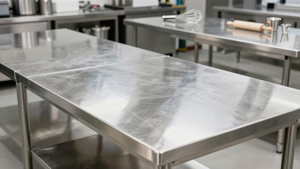The most common durability issues with commercial stainless steel tables include scratches, dents, and corrosion over time. I’ve seen surfaces get scratched from heavy utensils, and dents from accidental impacts. Corrosion or rust can develop if the steel isn’t properly maintained or exposed to harsh chemicals. Regular cleaning and avoiding abrasive scrubbers help maintain the table’s integrity. Investing in high-quality stainless steel minimizes these issues and extends your table’s lifespan.