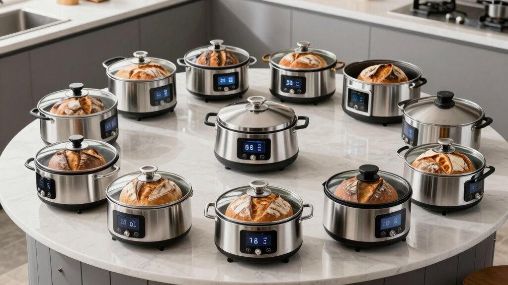 Did you know that home bakers who use combo cookers like Dutch ovens see a 30% increase in sourdough crust quality? Choosing the right one can transform your baking game. Whether you prefer enameled or traditional cast iron, the right cooker guarantees even heat and perfect crust every time. So, invest in a quality combo cooker, and watch your sourdough rise to new delicious heights!