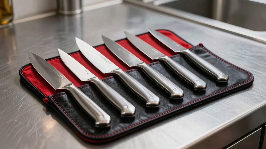 A well-organized knife roll makes all the difference in my daily routine, keeping my tools protected and easily accessible. Multiple individual slots or pockets ensure each knife stays separated, preventing damage during transport. Adjustable or elastic straps help secure knives firmly in place, so nothing shifts or falls out. Dedicated compartments for different sizes and types boost efficiency, letting me find what I need instantly. Extra pouches for honing rods, scissors, or sharpening stones add convenience, reducing clutter. The full-opening, flat design allows me to see all my tools at once, making inventory quick and simple. Overall, these features keep my knives safe, organized, and ready to go—saving me time and frustration during busy kitchen hours.