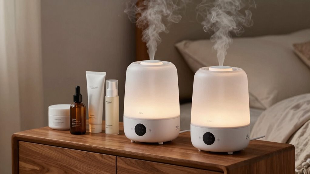 If you’re looking for the 15 best moisturizing humidifiers for your bedroom in 2026, I’ve found models with large tanks, long runtimes, and smart features that make maintaining ideal humidity effortless. Many come with quiet ultrasonic technology, aromatherapy options, and easy refilling designs for convenience. Safety features like auto shut-off are also common. If you want to discover which humidifiers suit your needs best, keep exploring—there’s plenty of helpful information ahead.