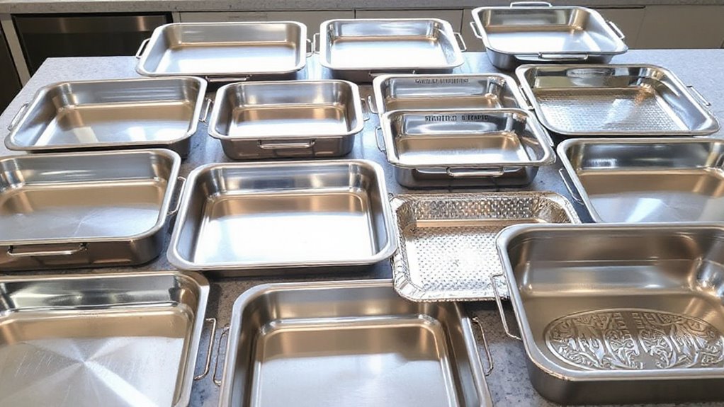 Absolutely, stainless steel pans work great in convection ovens. I once baked a batch of cookies using my stainless steel roasting pan, and they turned out perfectly crispy and evenly cooked. The pan’s durability and heat conduction make it ideal for convection baking, where air circulation evenly distributes heat. Just make certain your pan fits well and is oven-safe, and you’ll get consistently fantastic results every time.