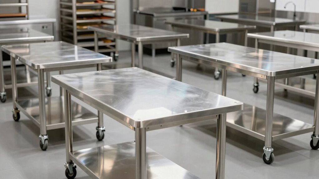 Yes, these tables are designed to withstand high heat and moisture conditions. I’ve found that high-quality stainless steel, especially grades like 304 or 316, resists corrosion and handles temperature fluctuations well. They’re built for busy kitchens, so they won’t warp or rust easily. Just make sure to choose models with proper sealing and corrosion-resistant coatings, and they’ll serve you reliably in demanding environments.
