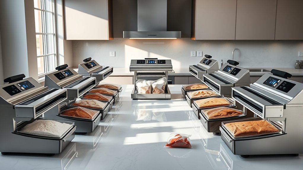 Choosing the right heavy-duty vacuum sealer for baking ingredients can feel like a coincidence—finding that perfect match that simplifies your kitchen routine. Whether you need a compact model or a commercial-grade machine, I’ve seen firsthand how these top options make sealing easy and reliable. When you pick one that suits your needs, you’ll discover that preserving freshness becomes effortless, almost like it was meant to be. It’s the coincidence that makes baking even better.
