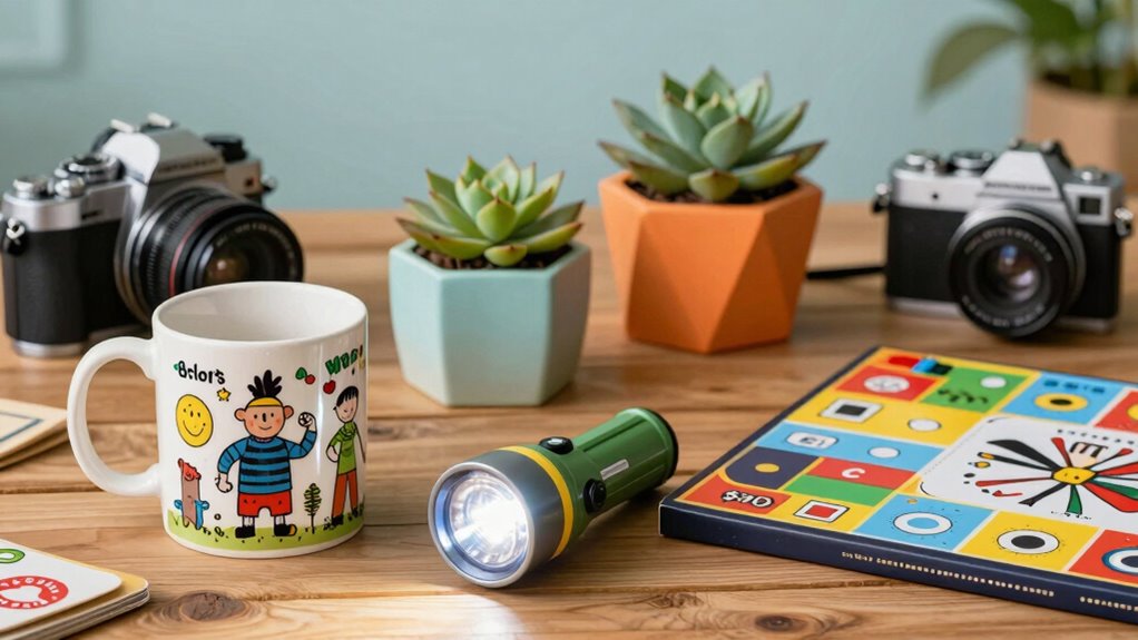 Looking for gifts that hit two birds with one stone? I’d go for a quirky coffee mug with a funny quote or a practical gadget like a portable phone charger. These gifts make everyone smile and get used daily. Think outside the box—funny socks, a goofy kitchen timer, or a humorous book. They’re affordable, amusing, and sure to be a hit at your next white elephant party.